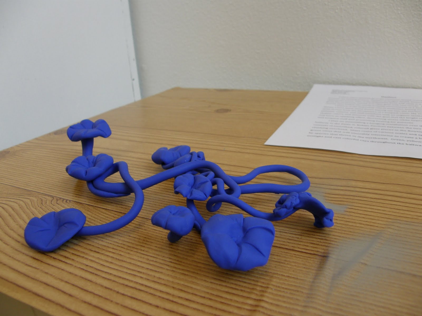 There is a cohesion to what seems to be a carefully perfected aesthetic throughout the installation. The artist has produced many pieces in the same style. The malformations and seemingly unprofessional crafting skills are purposeful.